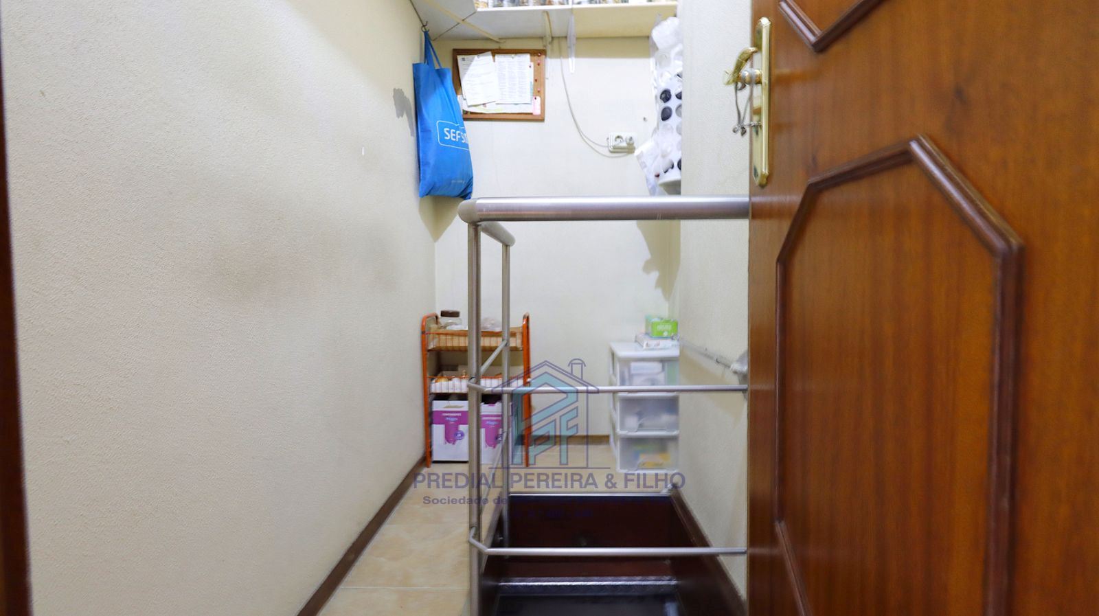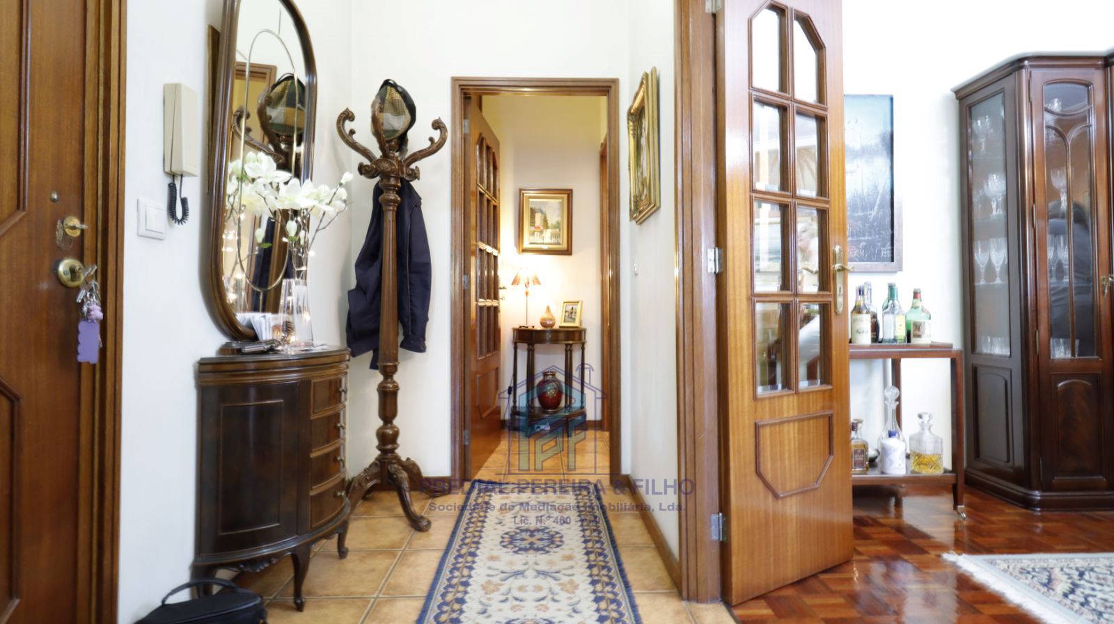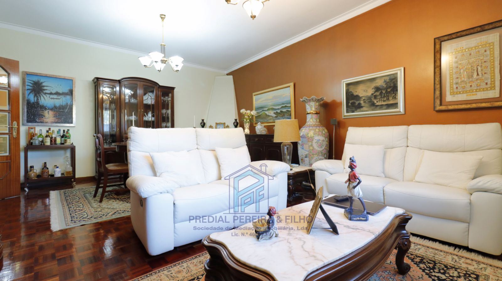 Apartamento T2, com àrea de 97,70m2 e cave com 87,50m2, com pátio com 19,5m2 e jardim, inserido em prédio com cave, rés-do-chão e 3 andares.