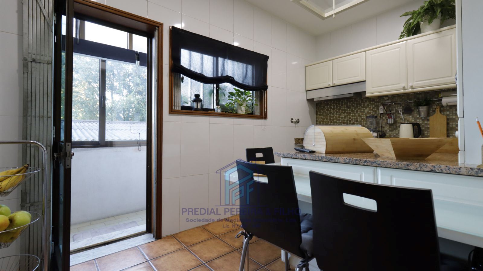 • Cozinha com 11,3m2 com móveis em pós-fórmica, tampo granito, com placa, forno,
