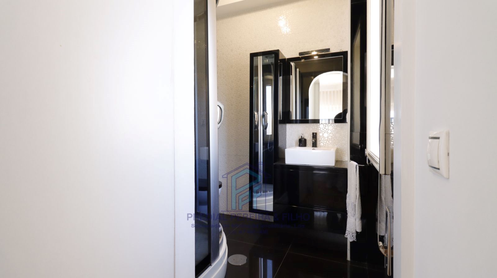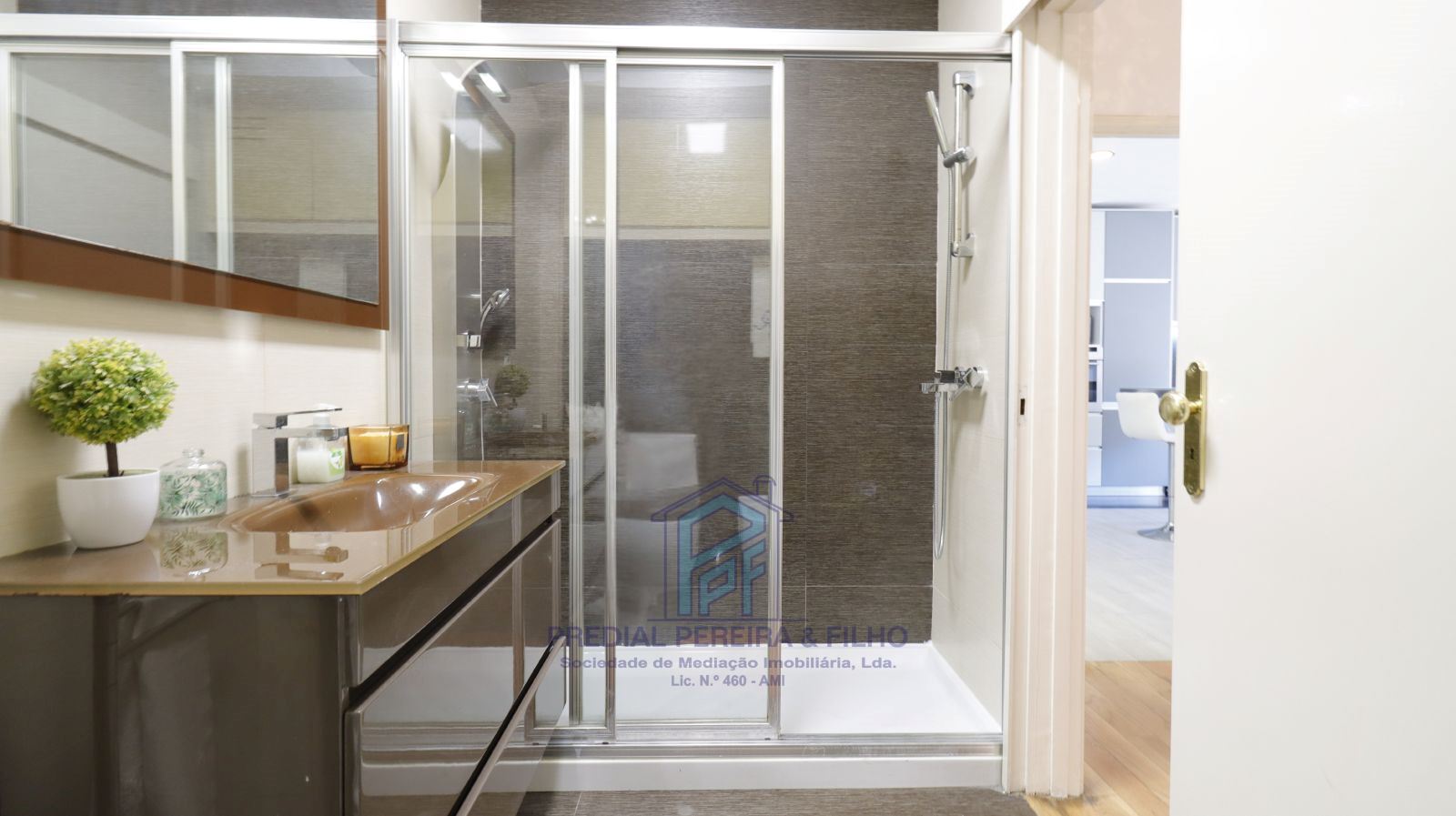 • 1 Suite com 18m2, com roupeiro espelhado, com banho com luz direta, com móvel e