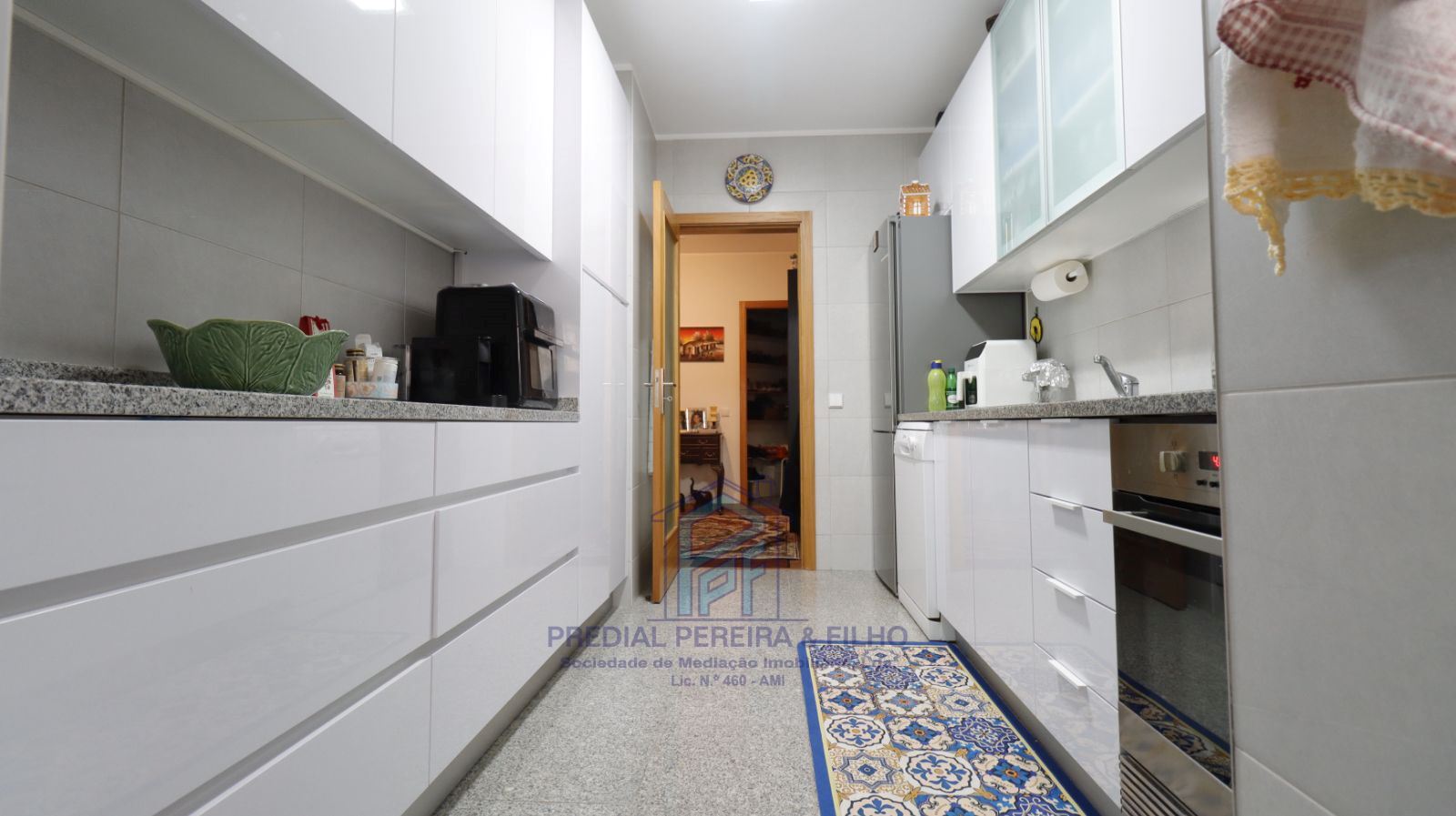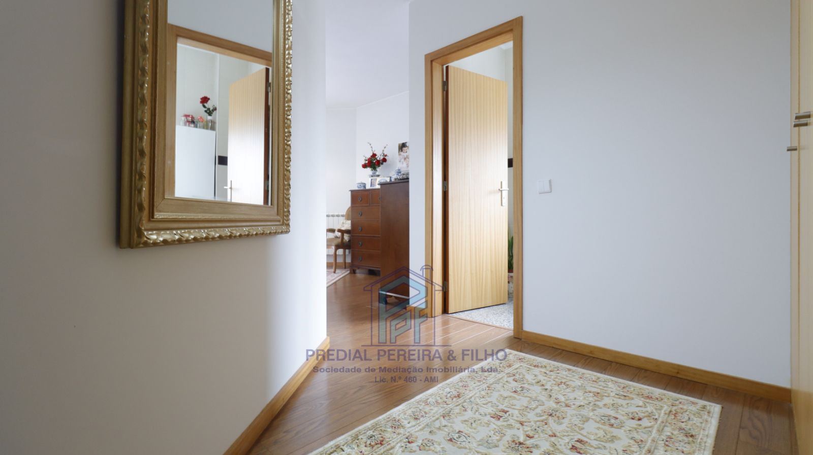 Pavimentos em tijoleira, granito e soalho flutuante, paredes pintadas a liso, caixilharia dupla em alumínio com vidros duplos e janelas duplas, aquecimento central, vídeo porteiro, gás canalizado, porta de segurança, portão da garagem automático com comando.